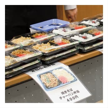 お昼には、安くて美味しいお弁当やバラエティ豊富な