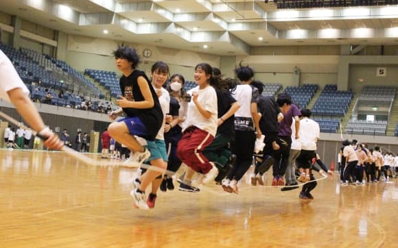 学科・学年を超えた全校で繰り広げられるスポーツ大会。広大な千葉ポートアリーナを使ってのクラス対抗戦は盛り上がりMAX!